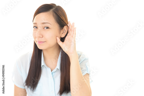 woman, people, people, work, business, ear, hear, tone, gossip, communication, communicate, communication, secret, hear, stress, work, working girl, office, woman, young, adult, youth, expression, smile, sweet, pretty, lively, model, beauty, happy, health, girl, shirt, alone, japanese, asian, body, waist up, copy space, white background