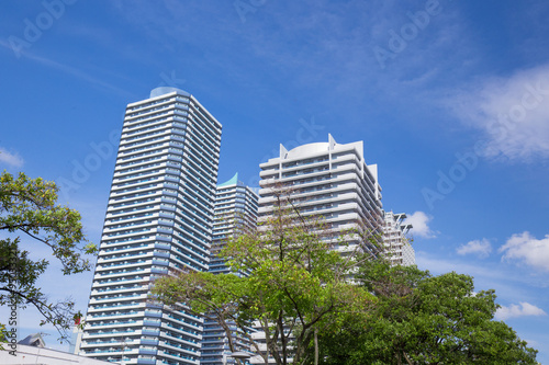 yokohama, highrise, condo, park, green, green, verdure, office, business, building, wall, big city, metropolitan, building, construction, daytime, view, sunny, kanagawa, sky, look up, skyscraper, city, japan