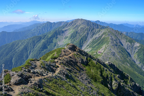 japan, landscape, nature, open air, copy space, view, view, mountain, outdoors, climb, mountaineering, mountain chain, vision, sky, cloud, route, green, rock, peak, panorama