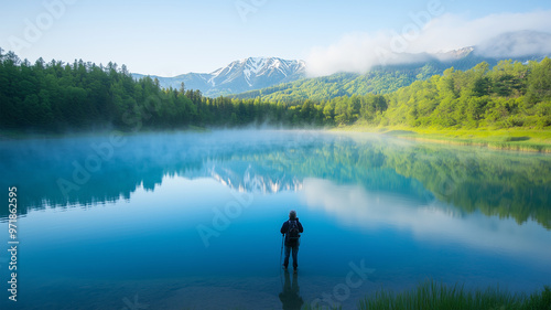 photo, camera, landscape, fog, mere, nature, man, middle-aged, homework, art, snow, photographer, lake, green, mirror, reflex, mystical, concentration, attitude, adventure, water surface, feeling, morning, soft, transparent, screen, rendering, discovery, regeneration, experienced, myth, imagination, history, mind, calm, object, contact, refraction, treasure, portrait