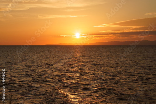 sea, landscape, sun, nature, sky, cloud, sunset, wave, beach, sunset, japan, dusk, copy space, evening, light, open air, orange, sunny, sado, sunset, orange