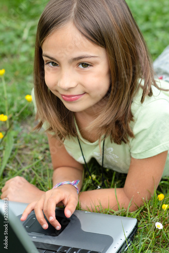 computer, nature, cyberspace, grass, toddler, computer, smile, garden, game, distraction, interactivity, click, movable, game, fun, grass, outside, leisure, long, mobility, lass, connection, liberty, look