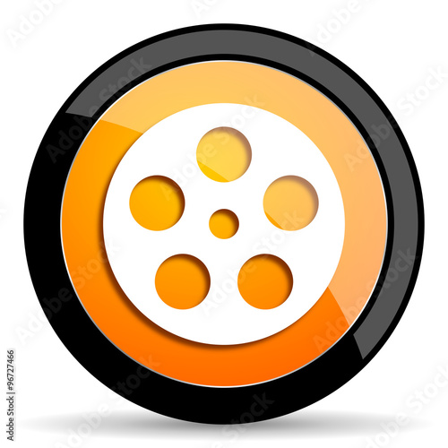 motion picture, film, icon, signs, video, clip, play, filmstrip, photo, art, cinema, frame, negative, slide, multimedia, photograph, image, retro, disrobed, photo, entertainment, television, cinematography, web, buttons, symbol, app, illustration, label, banner, glossy, orange, circle, round