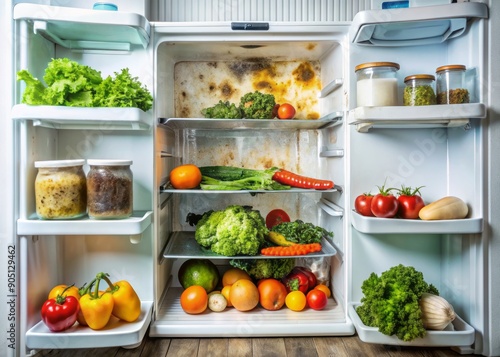 refrigerator, rotten, moldy, expired, old, food, vegetable, leftover, stale, grimy, messy, kitchen, appliance, cleanliness, hygiene, hazard, decay, fermentation, odour, foul, smell, fungal, molded, yeast, putrid, sour, rancid, tainted, contaminated, poisonous, unhealthy, neglected, forgotten, abandoned, unclean, unsanitary, disgusting