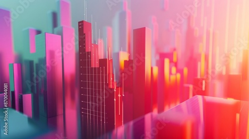 Finance charts graphs on color gradient background. Digitally generated image. 3d render.