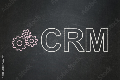Finance concept: Gears and CRM on chalkboard background