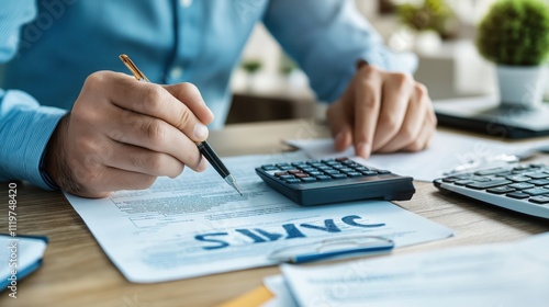 Financial analysis and budget planning office setting document review professional environment close-up perspective business strategy