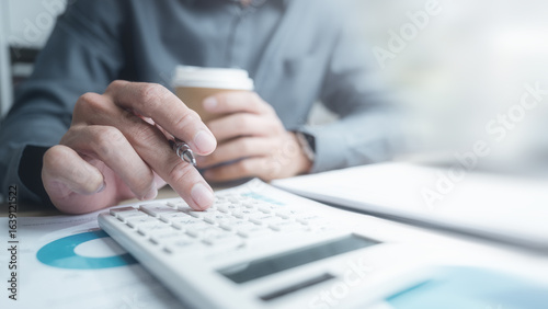 Financial business analysis. Account management. Accounting finance calculator. Accountant analysis money budget. Accountant working concept.