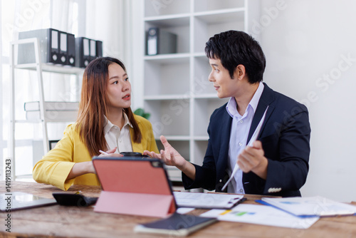 Financial Business team analyze the graph of the company's performance to create profits and growth, Market research reports and income statistics, Financial and Accounting concept.