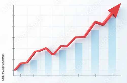 financial chart with red arrow on white background, 3d illustration of business growth graph