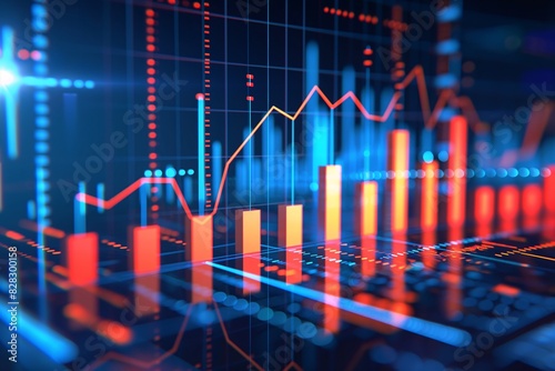 Financial charts are showing in the background. style of dark poster. increase of success graph and growth stock market earnings financial on profit income background with diagram chart investment.