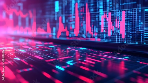 pattern, opportunity, progress, trading, infographic, interface, risk, investment, line, neon, glowing, trend, analysis, future, futuristic, vibrant, economy, chart, screen, display, success, finance, growth, stock exchange, graph, wallpaper, stock exchange, illustration, business, technology, modern, abstract, digital, blue, candleholder, concept, design, pink, background, bar chart