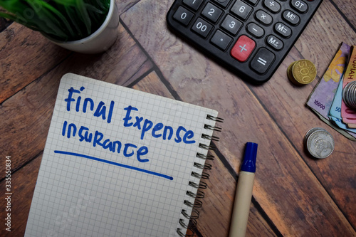 Financial Expenses Insurance write on a book isolated on wooden table.