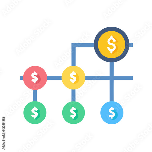 Financial Flowchart Diagram Showing Connections with Dollar Signs