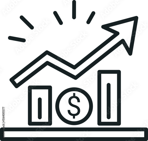 Financial growth and success illustrated by upward trend line and dollar coin