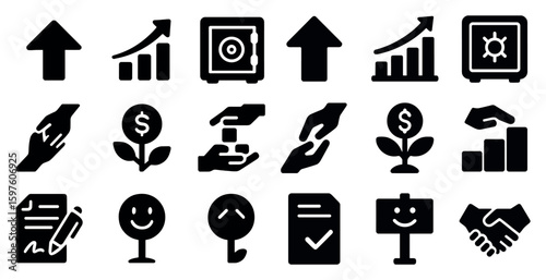 finance, business, solid, set, vector, icon, filled, transaction, investment, wealth, bank, savings, currency, profit, commerce, economy, portfolio, market, asset, trade, revenue, capital