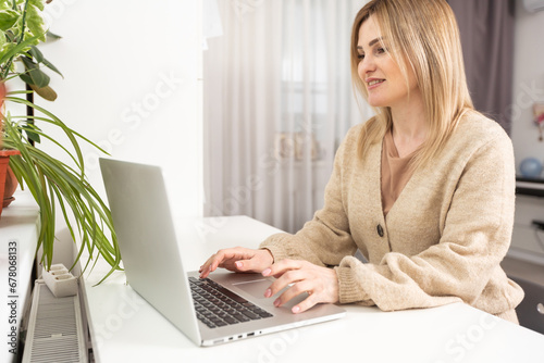 Financial research, government taxes, and calculation tax return concept. Business Woman using the laptop to fill in the income tax online return form for payment. Calculation tax return. tax and vat