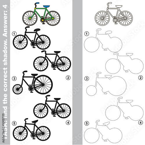 transport, sport, bicycle, wheel, bike, correct, baby, children, funny, game, infant, page, play, vector, simple, primitive, children, riddle, cartoon, educate, educational, logic, illustration, find, hidden, contour, compare, similar, same, object, puzzle, easy, connect, shape, shadow, silhouette, equal