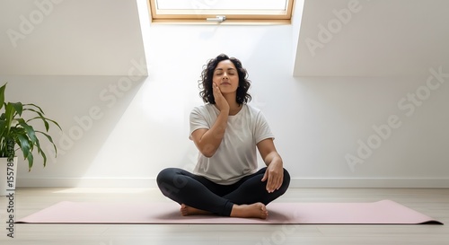 Finding Inner Peace A Woman Meditating in a Serene Home Setting
