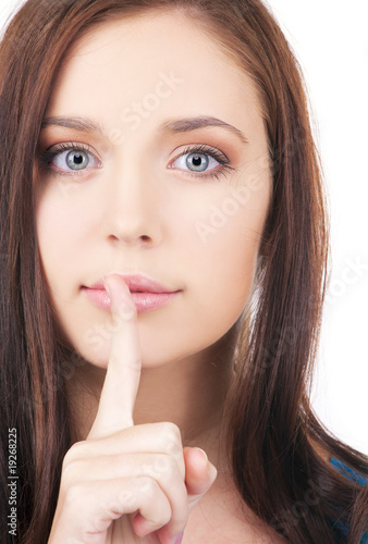 woman, girl, gesture, face, finger, lip, silence, attractive, beautiful, bright, female, lady, looking, lovely, caucasian, pretty, white, young, portrait, signs, expression, hand, gorgeous, closeup, person, showing, human, 1, adult, calm, conspiracy, enigmatic, hush, intimate, mute, mysterious, quiet, secret, shh, silent, warning, beauty, cute, blue, vibrant, crafted, teenage, teenage, teenage, brunette