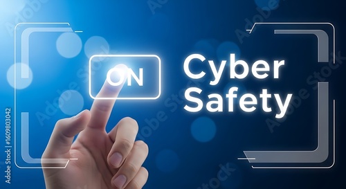 cyber, safety, digital, security, online, cyberspace, datum, protection, privacy, technology, futuristic, interface, touch screen, buttons, on, activate, pressing, finger, hand, blue, glowing, screen, network, information, secure, user, interaction, control, access, modern, innovation, concept, warning, alert