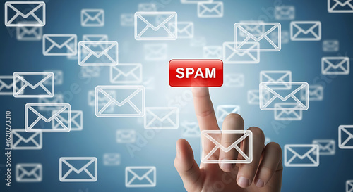 spam, electronic mail, finger, hand, buttons, red, white, blue, background, technology, cyberspace, digital, online, message, communication, inbox, junk mail, unwanted, alert, warning, security, click, press, interface, concept