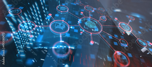 Fingerprint Cyber Security Data Protection concept. Biometric identification fingerprint scanner