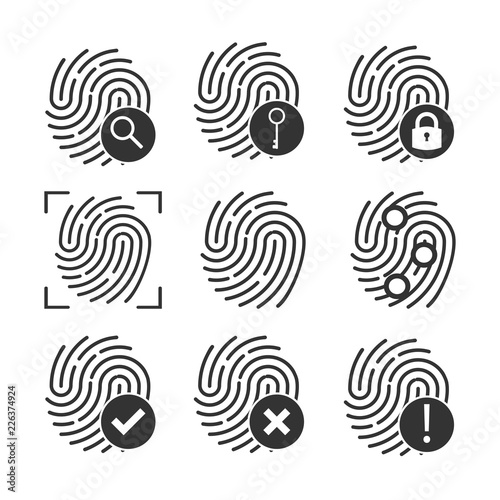 Fingerprint icon set. Vector illustration, flat design.