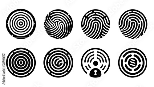 fingerprint, pattern, security, identification, technology, vector, illustration, graphic, icon, logotype, design, biometric, authentication, black-and-white, modern, simple, spiral, whorl, arch, digital, logo design, graphic design, digital artwork, iconography, abstract design