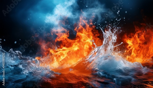fire and ice elements clashing in a dynamic visual creating an intense and vivid scene