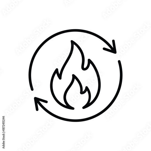 Fire Icon Cycle Arrows Black Line Art Vector Illustration