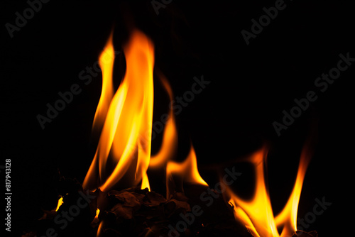 Fire texture on a black background. The fire pattern at night has its own impression.