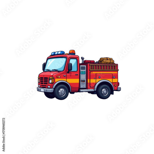 Fire Truck Response Urban Cityscape Cartoon Illustration Emergency Services Daylight Fire Safety Awareness Isolated on transparent background