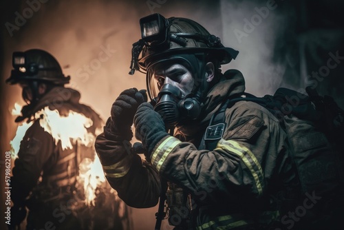 Firefighter searching for possible survives. Generative AI