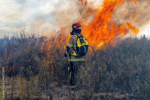 firefighter, forest fire, flames, fire, fireman, smoke, danger, water, burn, emergency, destruction, nature, forest, disaster, damage, heat, rescue, blaze, fighter, extinguish, person, equipment, environment, tree, protection, ecology, hot, wildfire, hose, dangerous, inferno, safety, helmet, help, service, spray, background, protective, red, wilderness, putting, man, put, grass, orange, wood, summer