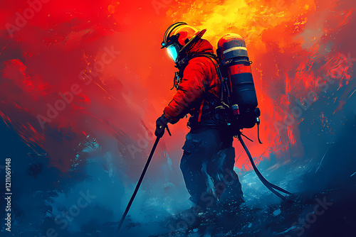 firefighter using radiant drones to extinguish a neon blaze