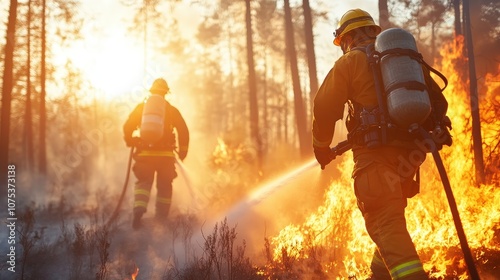 Firefighters Combat Wildfire with Water Spray