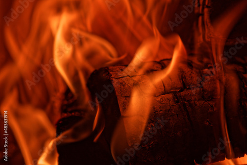 Firewood burning in the fireplace