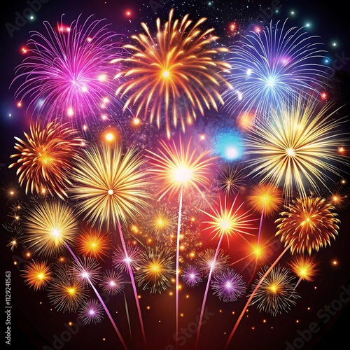 background, illustration, celebration, vector, new year's eve, new year, night, event, exploding, decoration, design, copy space, abstract, template, bright, anniversary, invitation, no people, happiness, blue, many-coloured, glistering, glittering, glowing, horizontal, shiny, greeting card, new, concept, colours, confetti, fireworks, joy, luxury, poster, spark, modern, text, dark, sky, vibrant color