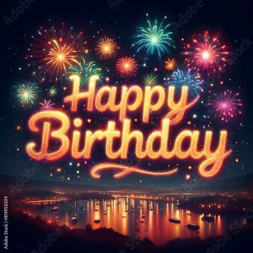 Fireworks display a happy birthday message.