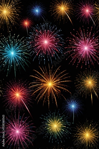fireworks, fireworks, celebration, night, holiday, fire, explosion, festival, light, sky, celebrate, new, pyrotechnic, red, black, blue, year, display, vector, abstract, party, colourful, event, new year, anniversary