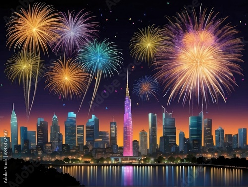 fireworks, night, celebration, fireworks, city, festival, holiday, light, sky, water, celebrate, fire, new, explosion, party, colourful, display, new year, skyline, year, light, beautiful, siam, black