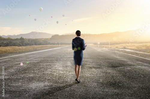 road, businesswoman, opportunity, forward, perspective, motivation, choose, travel, power, business, life, adult, symbol, horizon, asphalt, female, girl, nature, competition, landscape, trip, urban, find, direction, woman, career, boss, decision, way, activity, future, concept, success, caucasian, countryside, lifestyle, young, sky