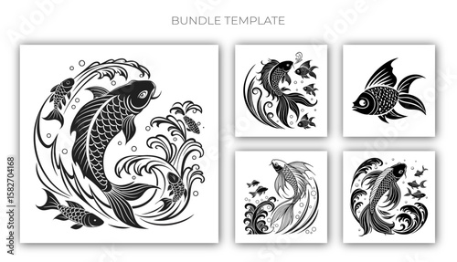 vector, fish, tattoo, illustration, design, art, animal, sea, symbol, pattern, decoration, floral, tribal, dragon, flower, bird, set, ornament, signs, logotype, element, nature, icon, black