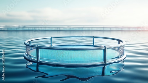 fish farm in open water, large circular nets, vibrant aquatic environment, digital concept art, isolated on white background