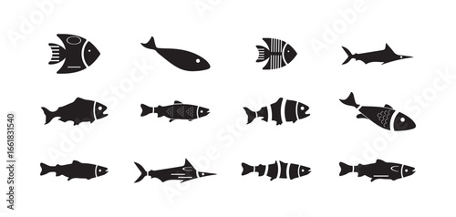 Fish icon set, Food sign collection, Fish or seafood symbol, vector illustration EPS 10.