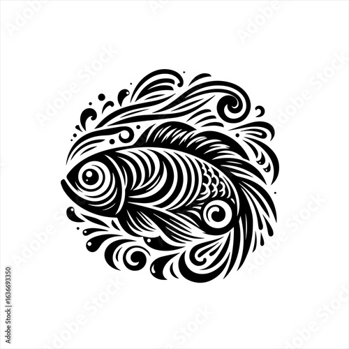 fish, animal, wildlife, nature, drawing, black, white, art, graphic, design, symbol, aquatic, water, tattoo, vector, pattern, illustration, floral, tribal, ornament, decoration, flower, element, bird, vintage, shape, swirl, silhouette, leaf, decor, decorative, swirl