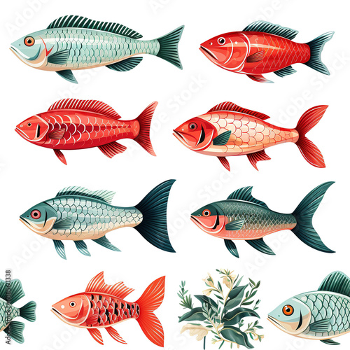 fish, isolated, pattern, white, cartoon, sea, animal, fin, nature, seafood, background, food, fresh, tail, fishing, raw, underwater, swimming, aquatic, meat, carp, healthy, white background, scale, silver, exotic, catch, trout, beauty, bream, closeup, colours, cut-out, horizontal, pet, aquarium, coral, head, freshness, ingredient, tropical, macro, water, beautiful, eye, marin, no people, seamless, repeat