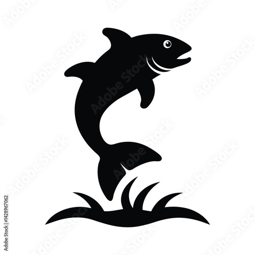 Fish Jumping From Clean Water Nature Silhouette Vector