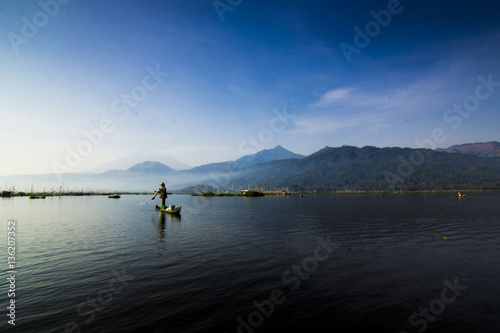 lake, sea, sunset, water, sky, fishing, alone, nature, indonesia, catch, river, cloudy